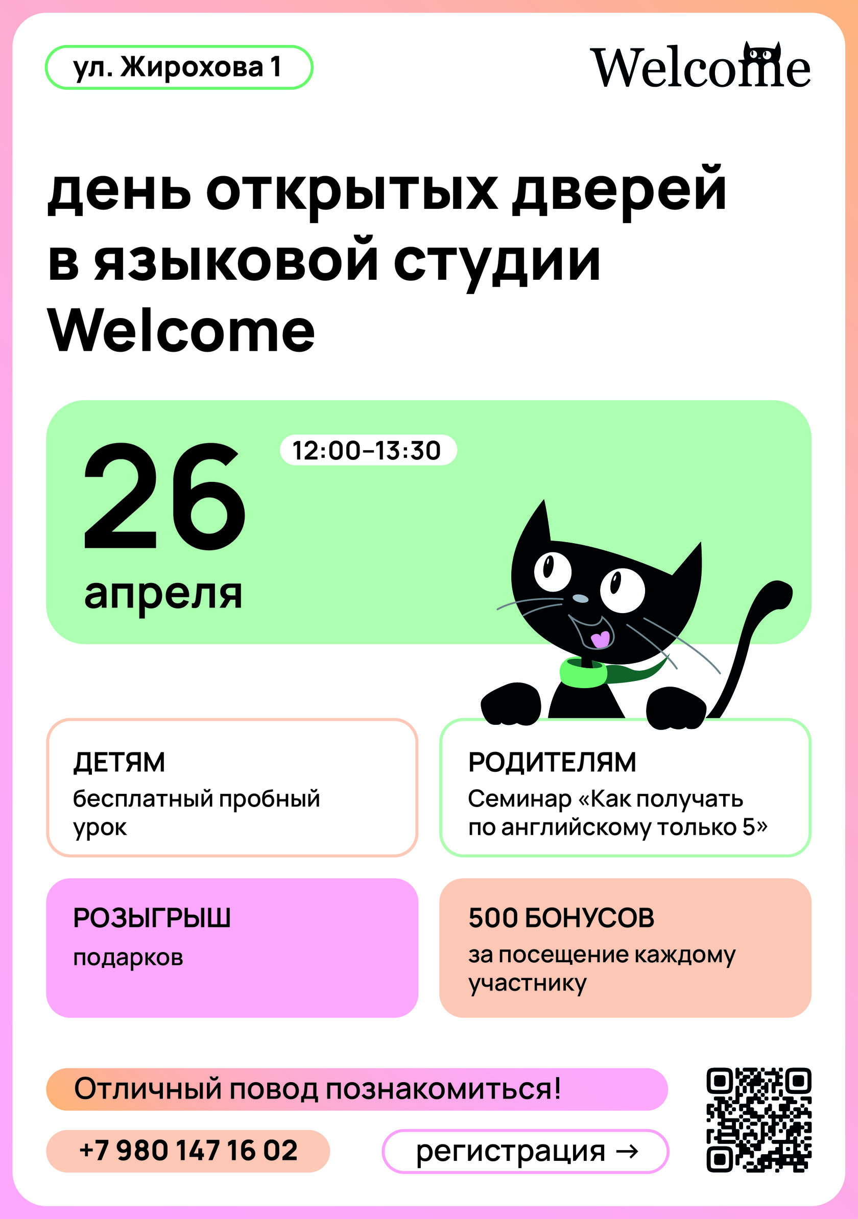 Уважаемые родители и ребята! Приглашаем Вас на наш День Открытых Дверей языковой студии Welcome, который пройдет: